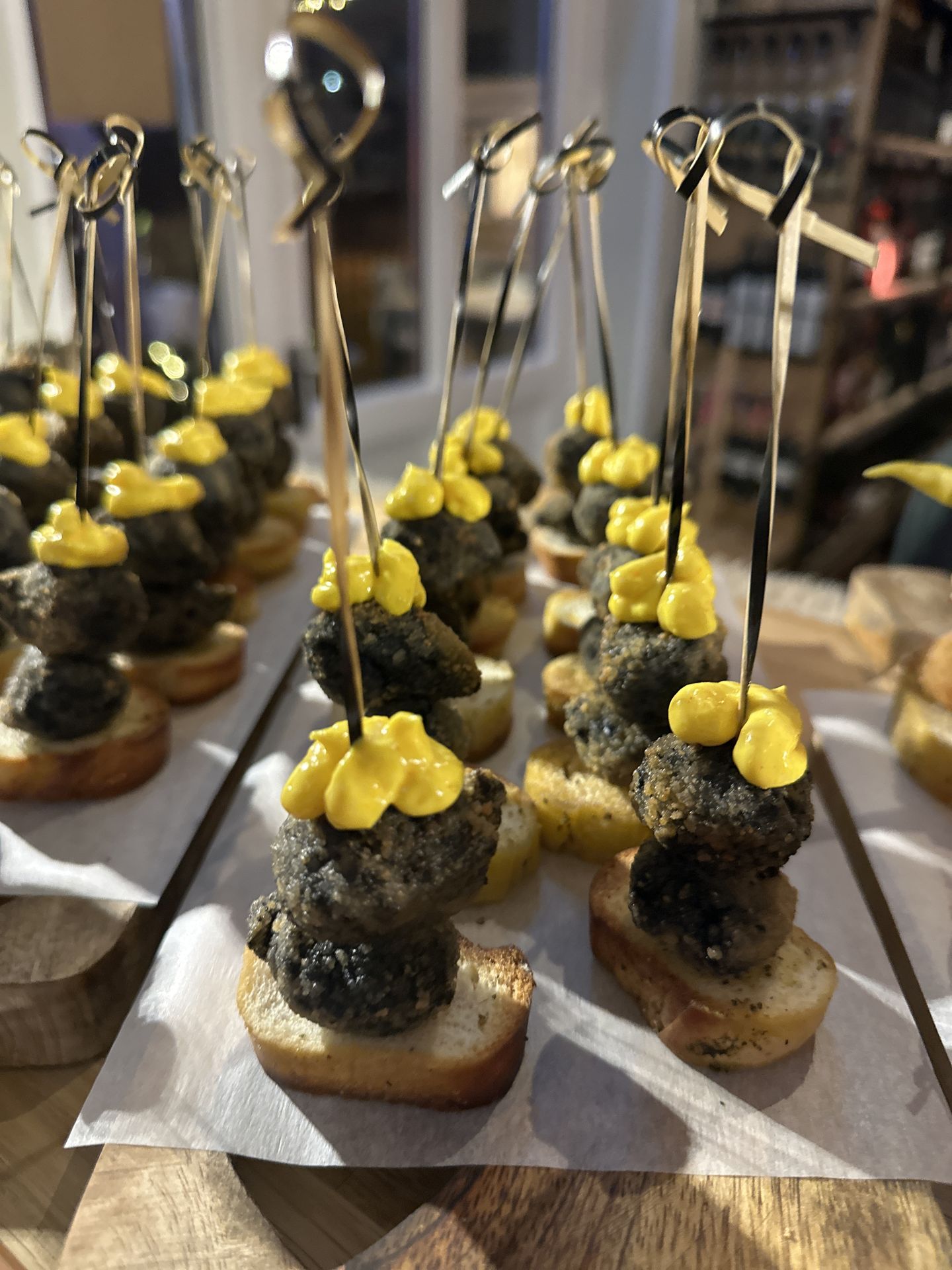 Das Herzstück des Abends waren die köstlichen Tapas, frisch zubereitet und liebevoll angerichtet. Von spanischen Klassikern bis zu kreativen Variationen mit regionalen Zutaten – für jeden Geschmack war etwas dabei. Die kleinen Häppchen luden dazu ein, verschiedene Kombinationen mit den Weinen zu entdecken.